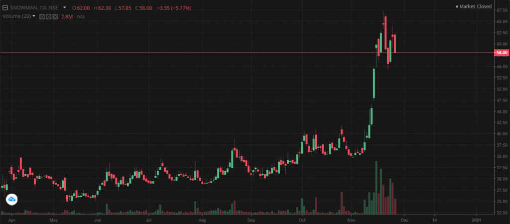 The day Pfizer's vaccine news came out, Snowman Logistics’ share went 8% up. The chart below depicts how the investors have got behind this stock. In March, the stock touched its 52-week low at Rs 24.60. Since then, it has really struggled to get back up. Till 3rd November, the stock was trading in the early 30s. In just one month, it went from Rs 34 to Rs 67.30. Almost a double! That's why it is often said that the stock market is unpredictable. But believe us, if you know the fundamental reason behind the happenings, you will always be a better and a knowledgeable investor in the long-run.