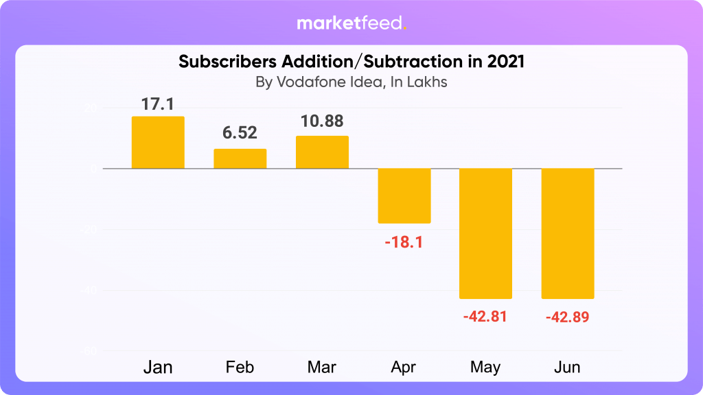As we know, Vodafone Idea faces stiff competition from Reliance Jio Infocomm and Bharti Airtel. Jio dominates India’s mobile market and has maintained over 35% gross subscriber market share since July 2020. They plan on launching 5G services very soon. On the other hand, Bharti Airtel had outperformed Jio in terms of active subscriber rates over the past few quarters. In February 2021, they also became the first telecom company to demonstrate 5G over a live commercial network in India (in Hyderabad).