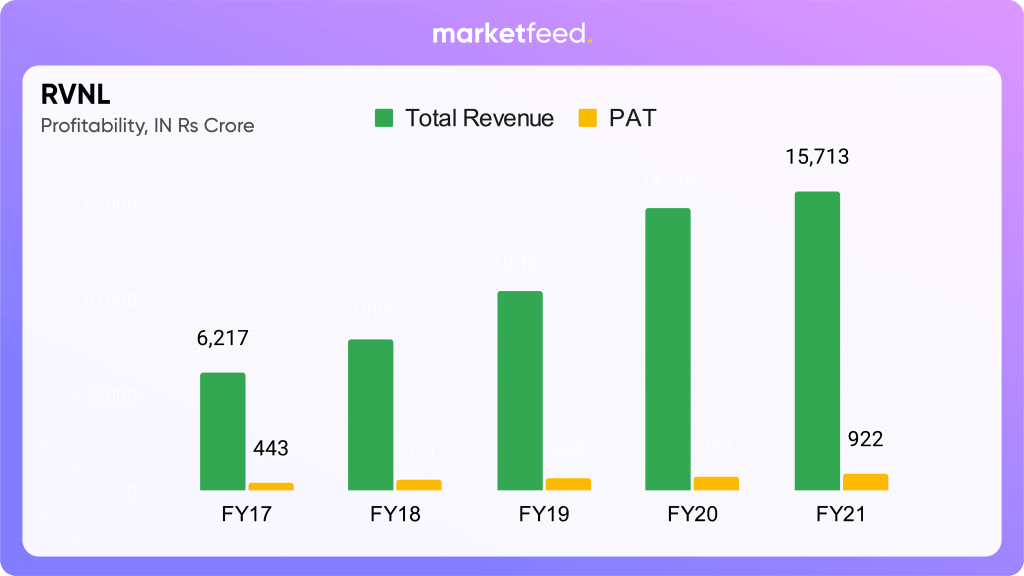 Meanwhile, RVNL is relatively a new company. To overcome the lag in infrastructure progress in the railway sector, the government incorporated RVNL in 2002 (as part of the National Rail Vikas Yojana). The company undertakes operations and maintenance services of different rail projects.