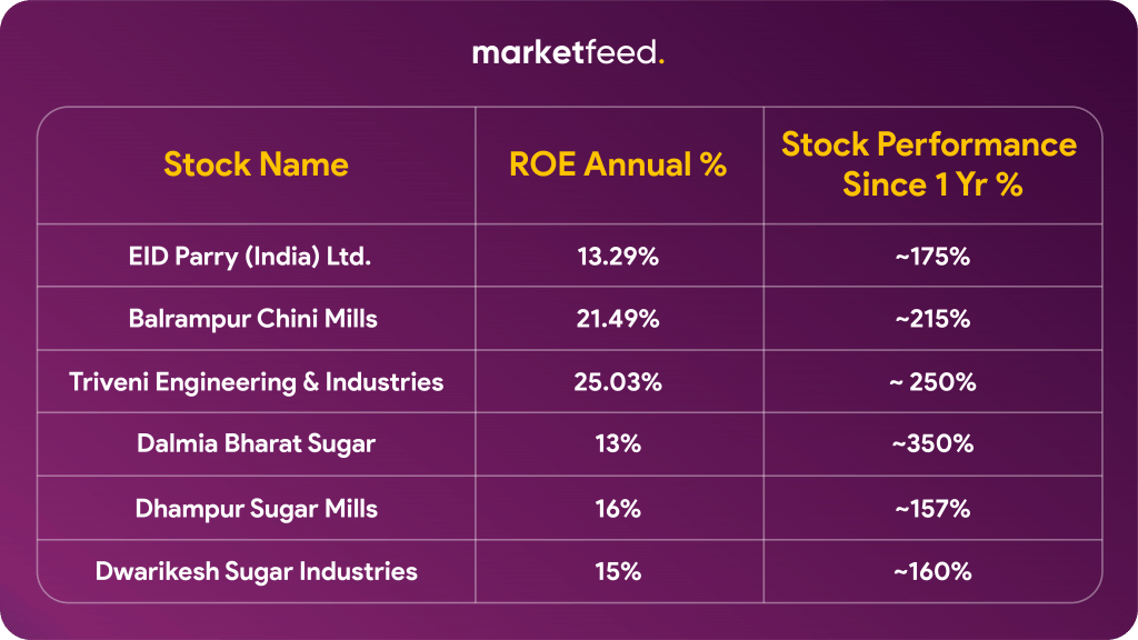 In the table given below, we can clearly see that sugar stocks have given MASSIVE returns. Some stocks like Dalmia Bharat Sugar have given returns close to 300%. In the last 1 month, the sugar sector has outperformed the NIFTY50 and SENSEX. While both the benchmark indices had their ups and downs last month, the sugar stocks gave some really positive and consistent returns. While the Q4 results for the past financial year have started pouring in, analysts are positive about profits in the quarter. This is mainly due to the global shortage of sugar, surging international prices and domestic prices, and India’s ethanol blending program.